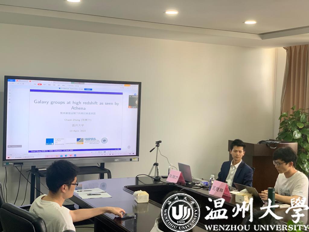 学院教师张潮力老师作为此次学术沙龙的主讲人,为大家带来了主题为“High red shift galaxy groups as seen by Athena telescopes”的报告。张老师全程用英文讲解,讲座内容深入浅出。他首先介绍了宇宙的形成,再从研究背景、内容和成果详细地介绍了自己的博士毕业论文。报告最后,他还就自己来到日本做爱 后做的研究课题做了介绍,并且向对他研究方向感兴趣的研究生抛出橄榄枝。