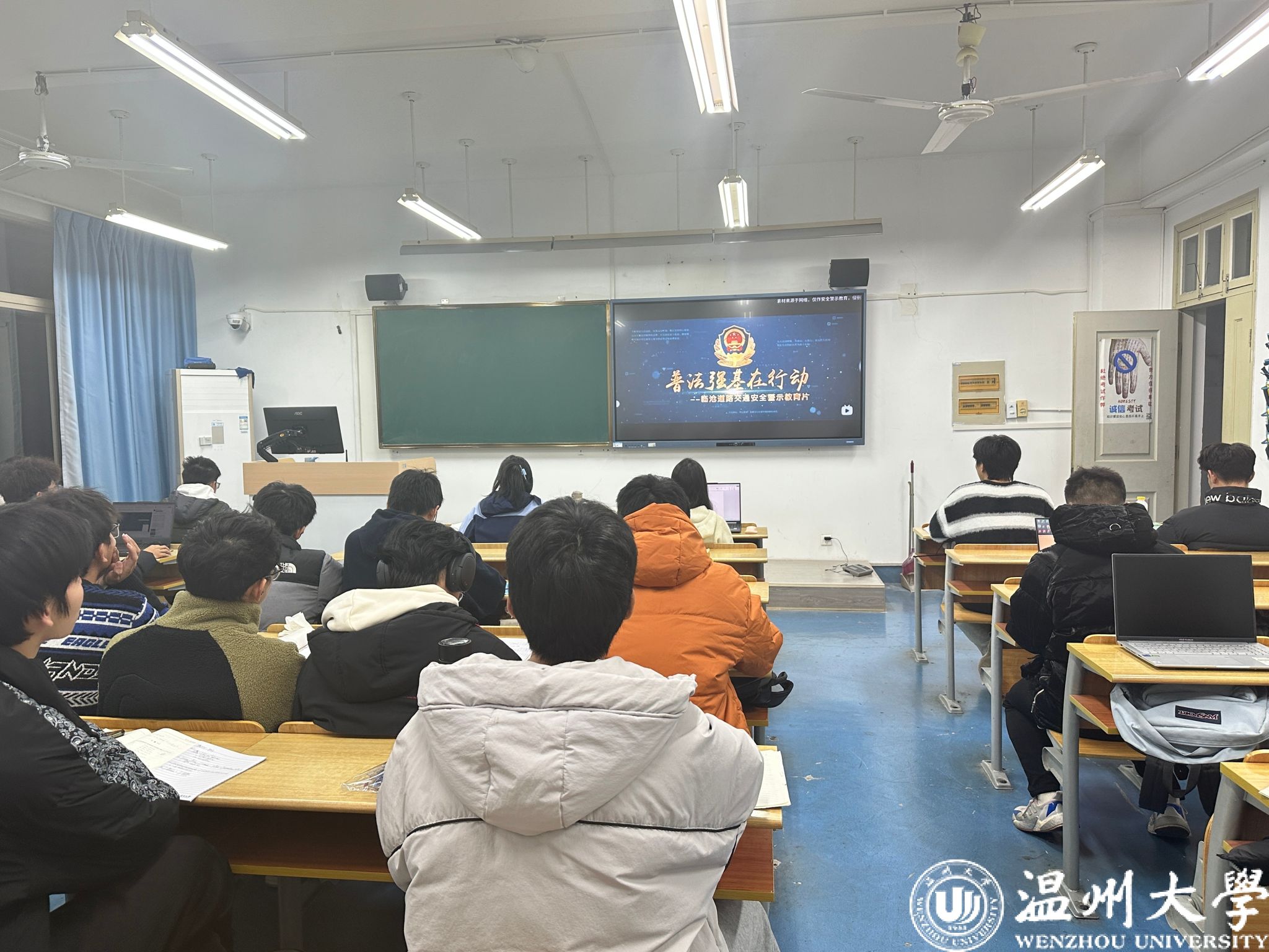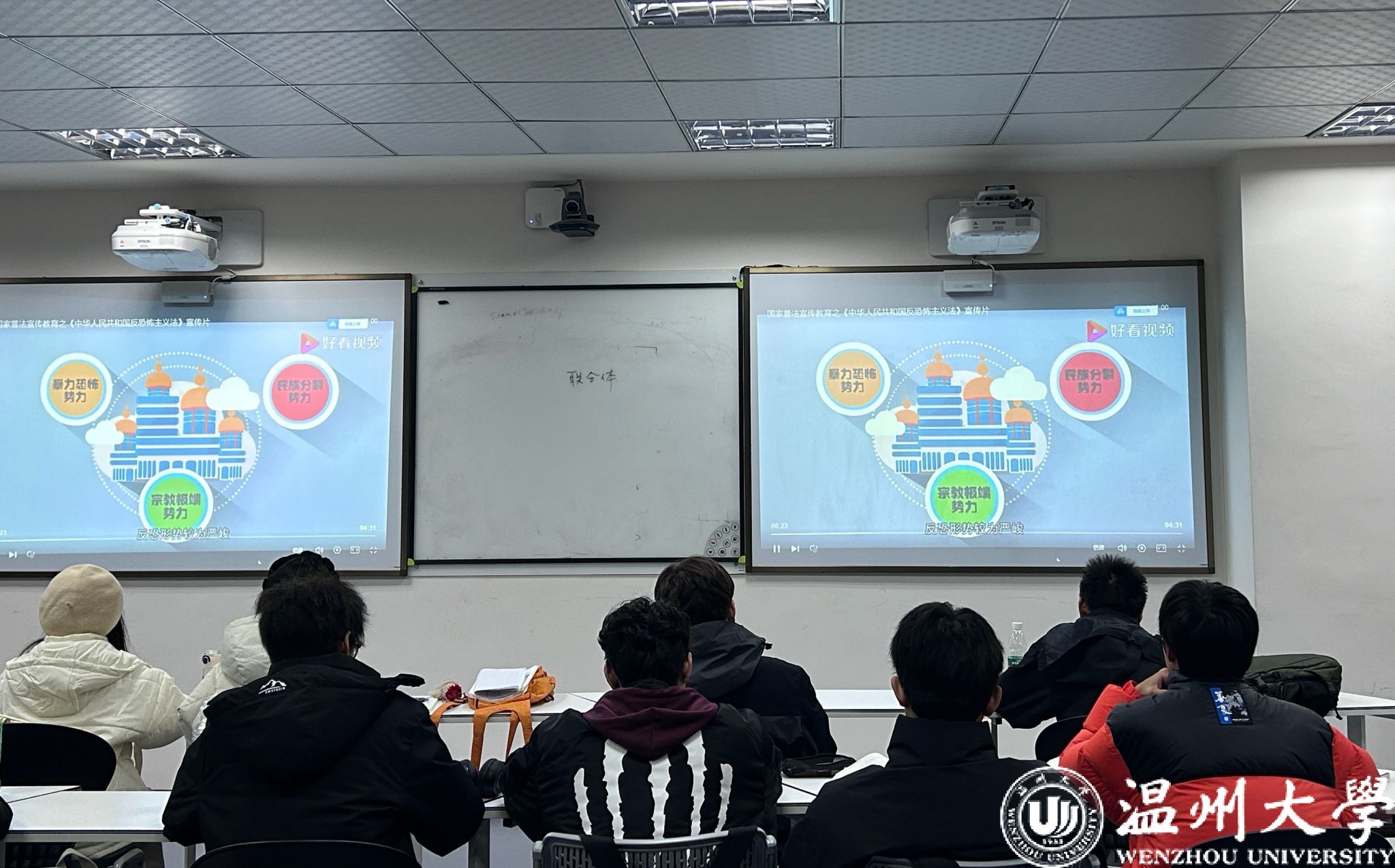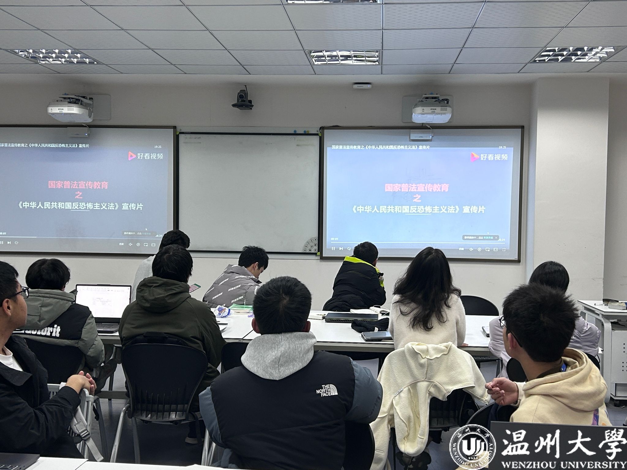 此次安全宣传活动围绕“12·27反恐怖公众宣传日”、“校园交通安全”、“拒绝‘校园贷’”和“消于始,防于未‘燃’”主题分别开展系列班会活动。班会课上,通过各班班长讲解、观看图片视频等方式对班级同学进行系列主题教育,增强了同学们的日常出行安全、寝室冬日用电的安全意识,引导了同学们认识“非法校园贷”,提高了同学们的反恐防范能力。