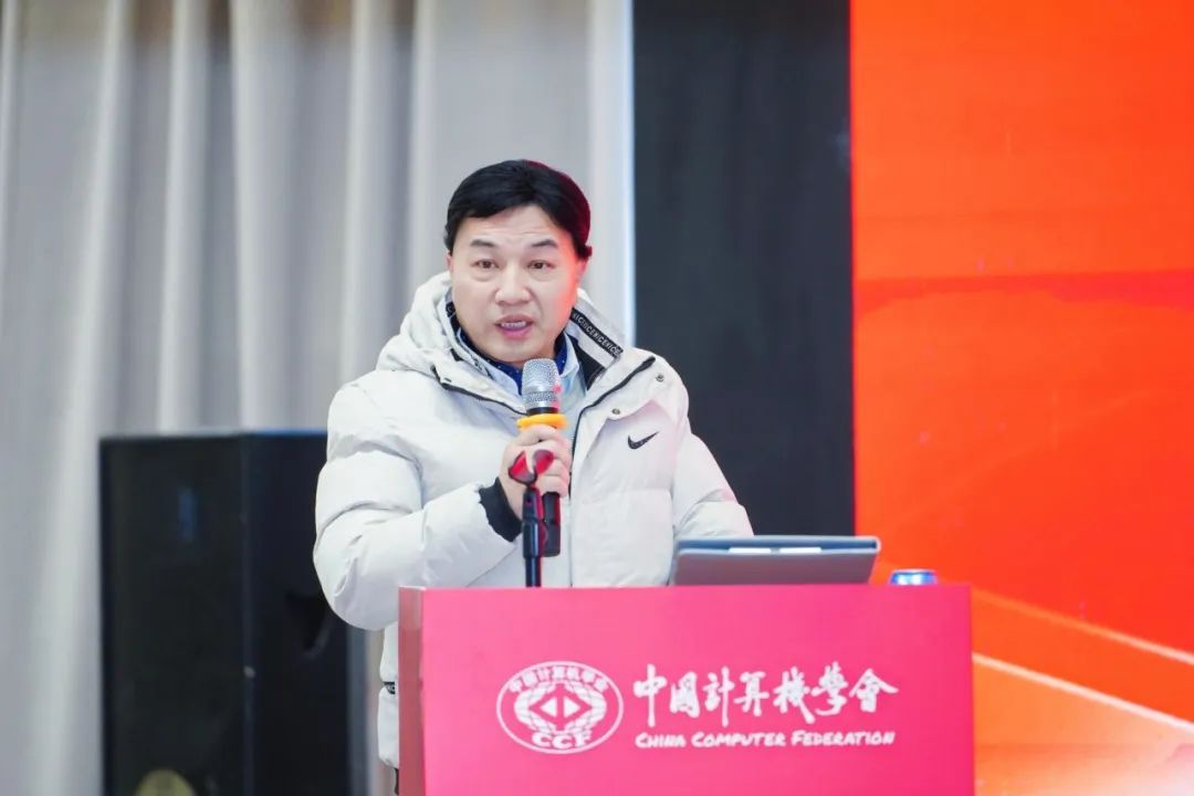 温州市鹿城区人民政府副区长王永林发表讲话,他强调CCF温州的成立不仅为温州地区的计算机科学爱好者提供了一个交流与学习的平台,更是推动温州科技创新、人才培养的重要举措;温州市大力实施数字经济创新提质“一号发展工程”,鹿城区是温州市数字经济集聚核心区,他寄望通过CCF温州的成立,为温州地区的计算机科学研究和应用发展注入新的活力,促进产学研合作,推动科技成果转化。