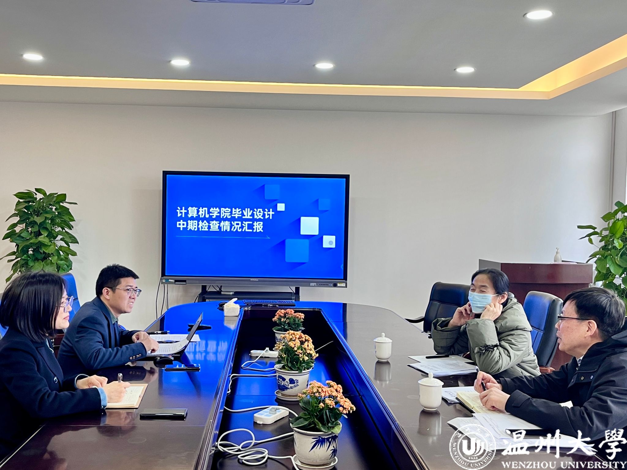 2024年3月14日上午,学校督导组庄友谊、贾守菊两位专家到计算机与人工智能学院开展2024届本科毕业设计(论文)工作中期检查,学院教学副院长黄辉汇报了毕业设计相关工作进展情况。