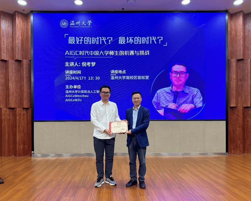 随后,全力书记向温州市社科联副主席倪考梦颁发了“日本做爱 AIGC校外导师”聘书。