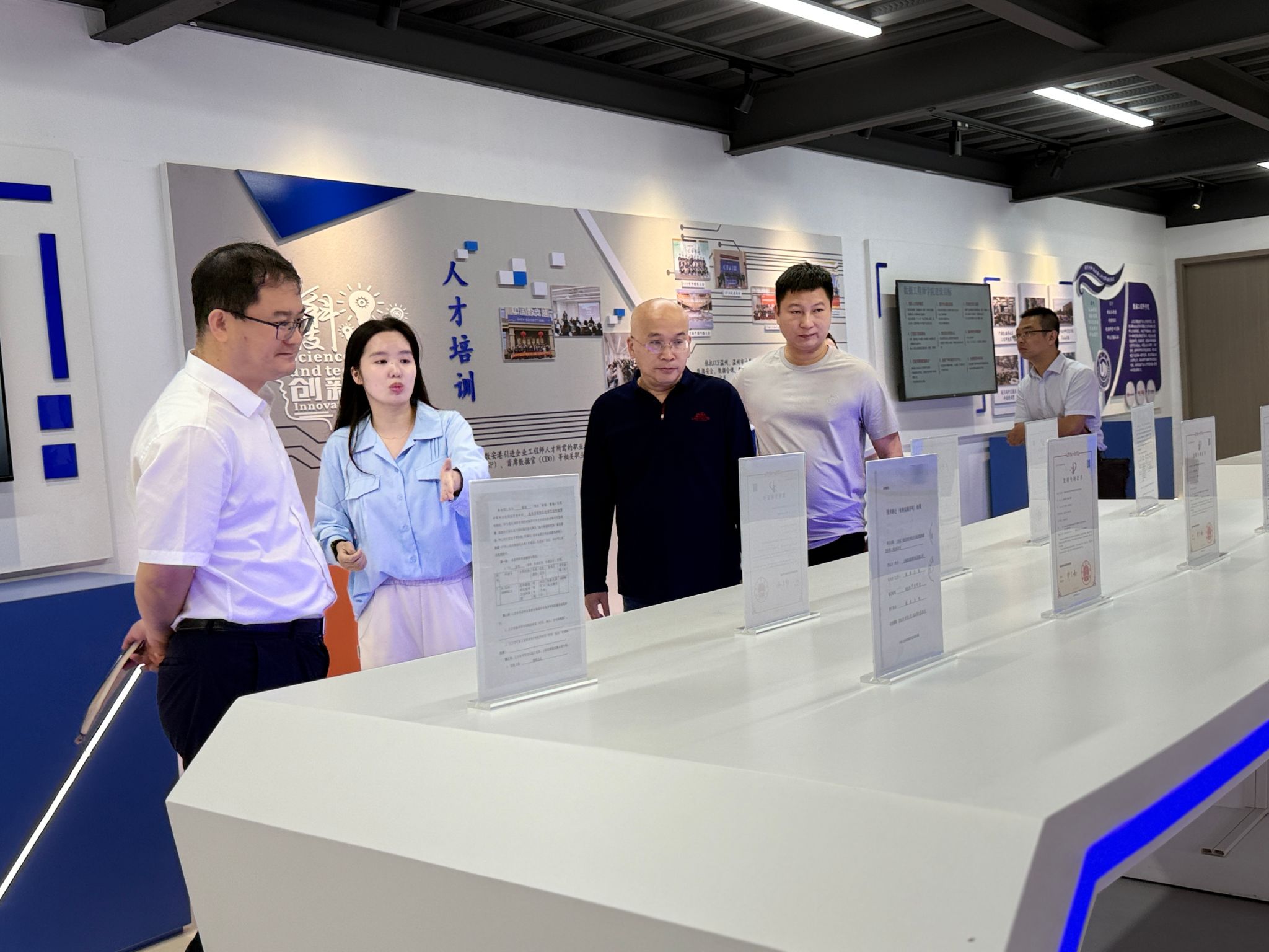 王军副校长一行在日本做爱 全力书记和温州数据研究院刘军副院长的陪同下,首先参观了研究院展厅。通过实地参观和听取介绍,王军副校长详细了解了研究院在交通物流、医疗健康、工业制造等相关领域的最新研究成果和技术应用情况。