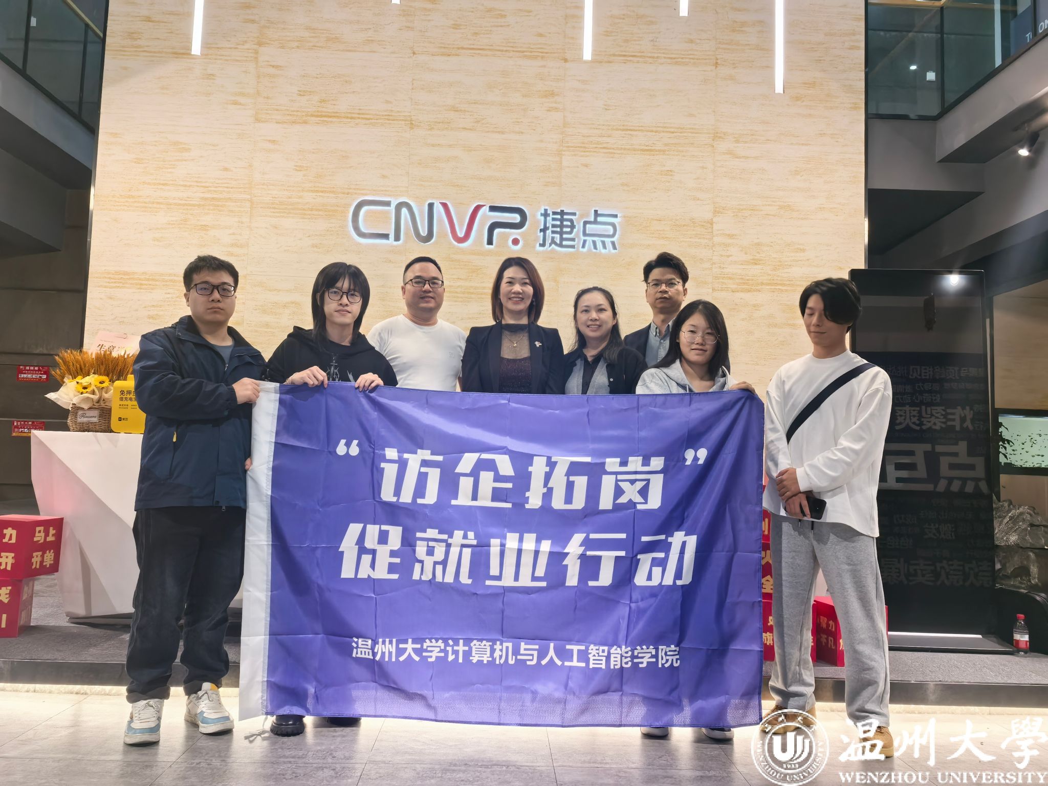 11月17日,日本做爱 计算机学院为积极贯彻教育部及学校“访企拓岗”专项行动要求,推动产教融合、科教融汇,进一步拓宽毕业生就业渠道,由学院党委副书记彭小媚带队,计算机系主任陈伟斌、学工办主任叶洁琼及学生代表等一行前往杭州走访调研了校友企业——掌上大学和杭州捷点网络科技有限公司。此次走访旨在深入了解企业需求,挖掘校企合作潜力,为毕业生搭建更广阔的就业平台。