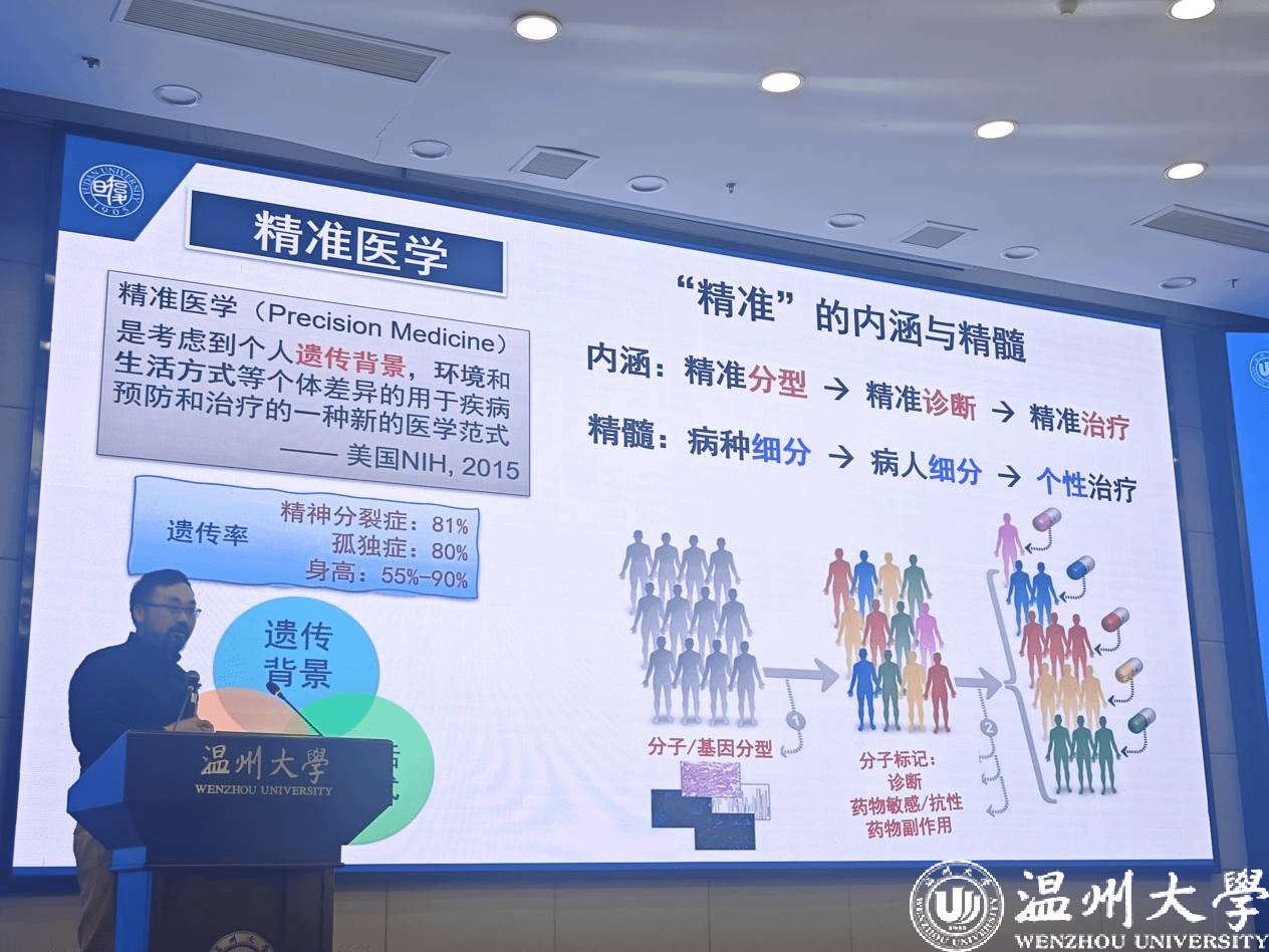 接着,徐教授详细阐述了全球范围内的精准医学计划,特别是那些涉及大规模人群基因组测序的项目,并强调了中国在人群多样性和庞大人口基数上的独特优势,为精准医学的发展带来了前所未有的机遇。他深入解析了精准医学的内涵,即通过精准分型实现精准诊断和治疗,并探讨了基因信息在这一过程中的核心作用。此外,他还提到了医学“关口前移”的理念,即通过分析疾病易感性的根源,实现疾病的早期预防和治疗。