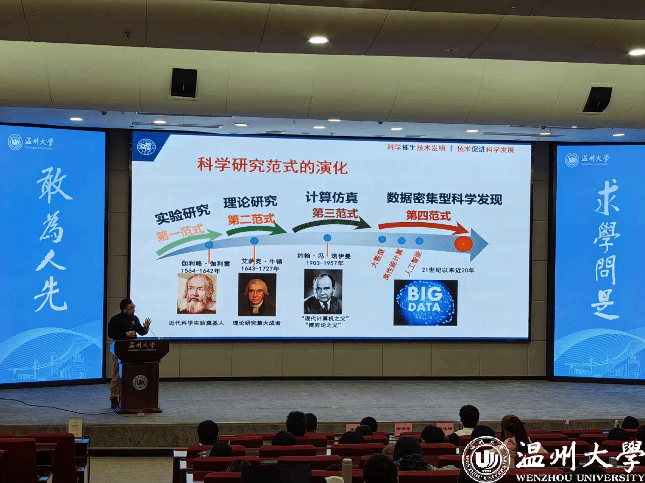 随后,徐书华教授正式开启讲座,他首先追溯了科学研究范式的历史演变,并着重指出基因组学在大数据科学中的核心地位,以及基因数据量级的飞速增长。