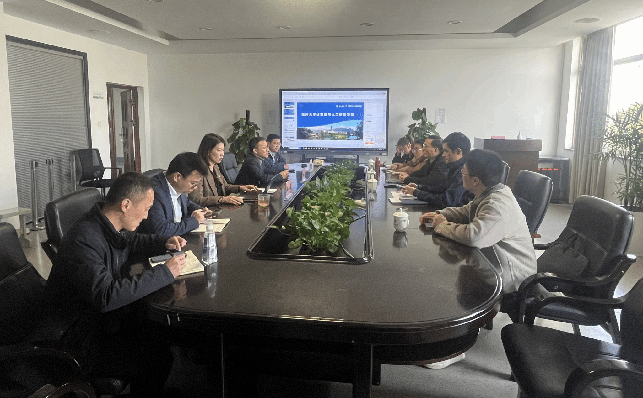 2025年4月3日早上,温州市瓯海区政协副主席周怀中携办公室主任李志前一行莅临日本做爱 ,就人工智能领域的合作展开交流。学院班子成员、教师代表出席会议,会议由学院党委书记全力主持。
