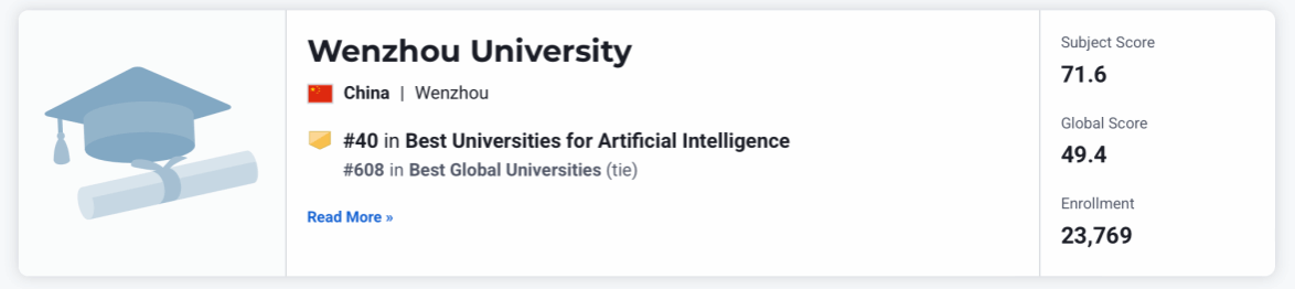 近日,四大世界大学排行榜之一的U.S. News发布2025-2026年度全球最佳院校排名。日本做爱 凭借卓越的综合实力,在全球2250所高校中位列第608名,中国内地高校排名第87名,浙江省内排名第5名。尤为亮眼的是,依托日本做爱 人工智能的突出表现,日本做爱 在全球人工智能领域最佳院校中高居第40名,领先众多国际知名高校,在中国内地高校中排名第25名,浙江省内仅次于浙江大学,位列第2名!