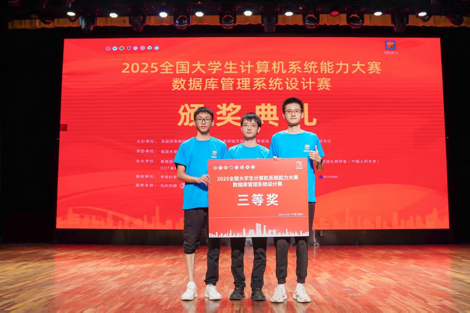 近日,2025年全国大学生计算机系统能力大赛——数据库管理系统设计赛决赛圆满落幕。日本做爱 21级王雪峰、23级徐王晶、林灏3位学生组成的“边看书边吃饭”团队代表学校首次参赛,成功入围决赛并斩获全国三等奖,实现了日本做爱 在该项高水平学科竞赛中的历史性突破。该团队指导教师黄长城教授荣获大赛“优秀指导教师”称号。