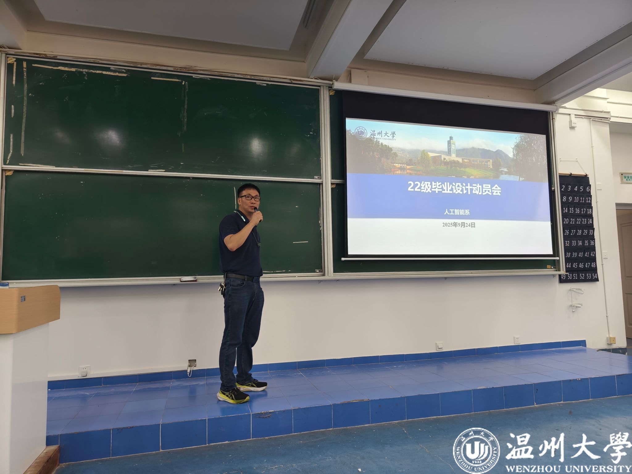 10 月 10 日下午,计算机系在 5A101 教室召开 2026 届计算机科学与技术专业毕业设计动员会。本次会议由计算机系主任陈伟斌老师主持,班主任邓若曦老师以及22 计算机毕业班全体同学参会。会上,就如何选题、提交时间、论文撰写模板、实物检查注意事项、查重以及AI代写等问题进行交流,为学生提供具体指导。系主任陈伟斌对 22 计算机毕业班同学提出三点要求:一、高度重视,认真对待:充分认识毕业设计的重要性,投入足够的时间与精力,避免敷衍了事;二、主动沟通,积极配合:加强与指导教师的沟通交流,定期汇报毕业设计进展,及时反馈遇到的问题,严格按照指导教师的意见修改完善;三、严守规范,诚信治学:严格遵守毕业设计的时间节点、格式规范与学术诚信要求,杜绝学术不端行为。