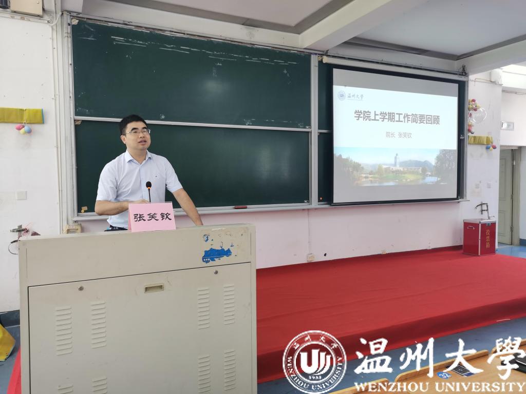 接着,张笑钦院长回顾了上一学年学院总体工作的情况和亮点,对学院新学期工作思路和工作重点进行了周密部署。张院长指出,上一学年来学院专业建设加强,学科建设成效显著,招生工作稳步提升,人才培养质量凸显,科研成果丰硕,人才队伍不断壮大,平台建设取得新进展,服务地方举措有力。新学期全院教职工要团结一心,落实各项工作,获得更高质量的发展。