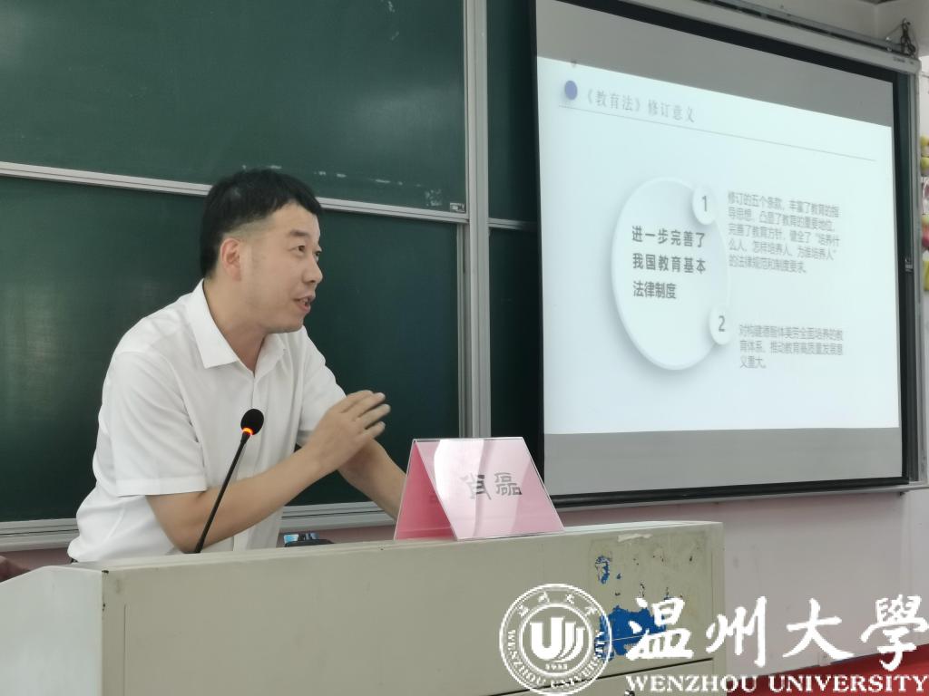 然后,学院领导班子成员分别围绕教学、科研、招生、学生工作等方面进行汇报,并做了新学期工作部署。肖磊副院长带领大家学习宣传贯彻实施新修订的教育法。他指出此次教育法修订,是贯彻落实党的十九大精神、全国教育大会精神的重要举措,是对教育基本法律制度的进一步完善。