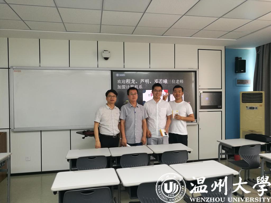 首先,会上对新加盟计算机系的三位优秀博士举行了简短的欢迎仪式,并由系主任陈伟斌老师赠送新入职教师计算机系入职礼品。