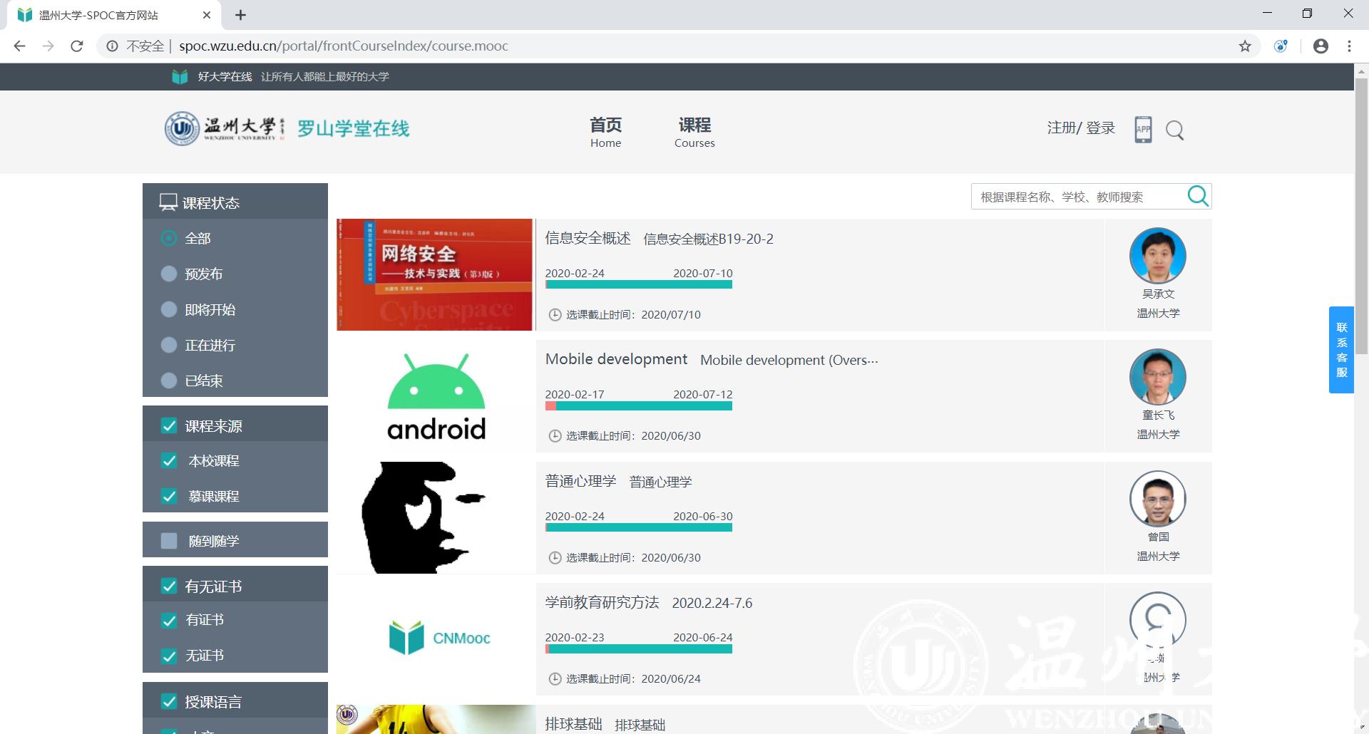 通过前期积累与本次工作的推进,本学期学院教师在日本做爱 “罗山学堂在线”平台上新开设19门SPOC课程,占全校本学期新开课程数的近50%,为本次线上教学的高质量开展奠定了坚实的基础。学院本学期新开设SPOC课程一览表: