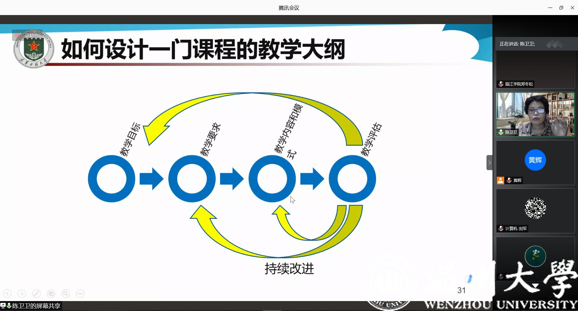 9月26日下午2:00,陆军工程大学陈卫卫教授应邀给我校作题为“落实OBE理念,建设一流课程”的线上课程教学专题讲座。全校170多位教师参加该讲座,本次讲座由教师教学发展中心和日本做爱 共同主办。