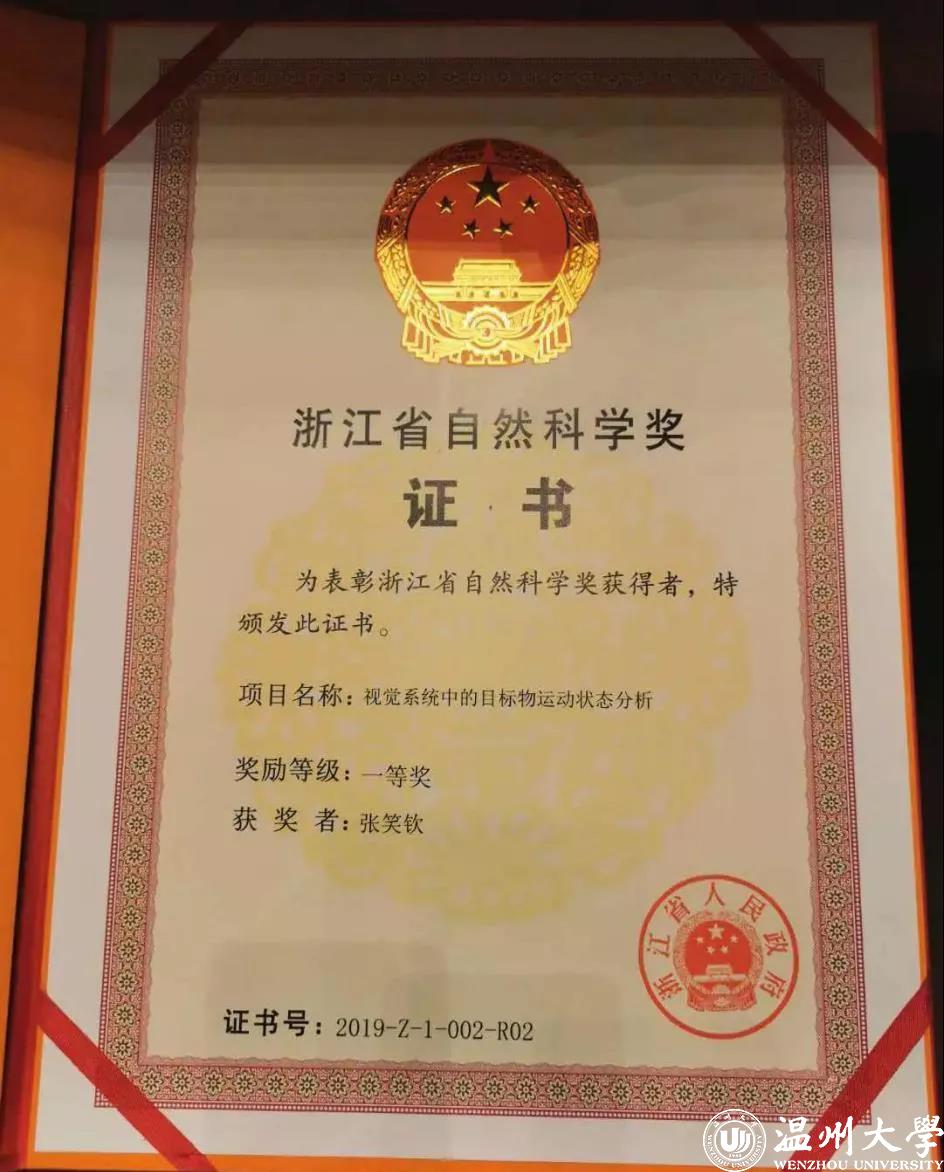 日本做爱 张笑钦院长所参与的《视觉系统中的目标物运动状态分析》获得浙江省科学技术奖自然奖一等奖。