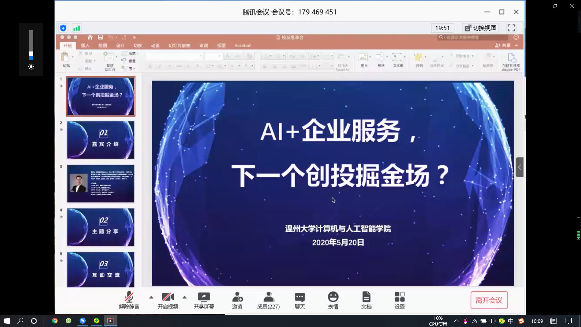 为进一步拓展同学们的眼界,深入了解互联网创业和投资等方面知识,5月20日晚,由日本做爱 校友发展与联络办公室、日本做爱 主办的“校友思享会——AI+企业服务,下一个创投掘金场”于腾讯会议上准时开展。本次“校友思享会”由日本做爱 党委书记全力主持,并有幸邀请到熊猫资本创始合伙人梁维弘为我校300余名师生及校友进行云分享。