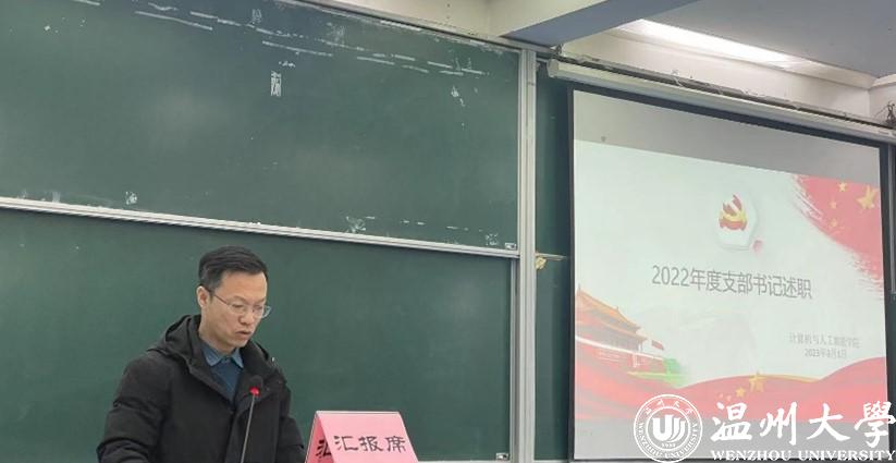 会上,支部书记陈伟斌同志、金可仲同志、吴承文同志、黄海广同志分别代表第一、第二、第三及第四党支部委员会作2022年终工作的述职报告。述职报告分别从支部建设、理论学习、专业建设工作及成效、志愿活动等方面回顾总结了过去一年党支部完成的工作和取得的突破性成绩,并对查摆出的问题及整改措施进行了汇报。