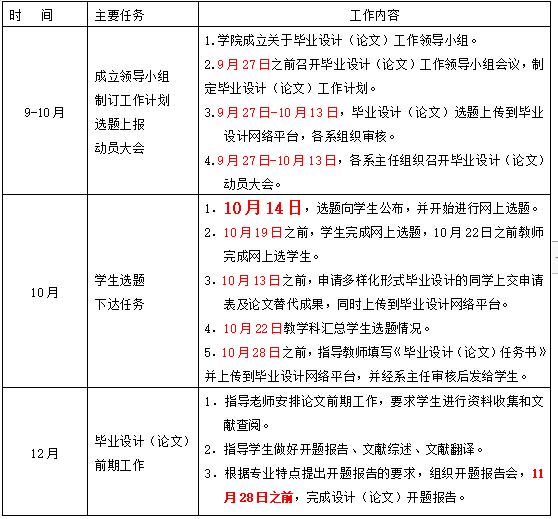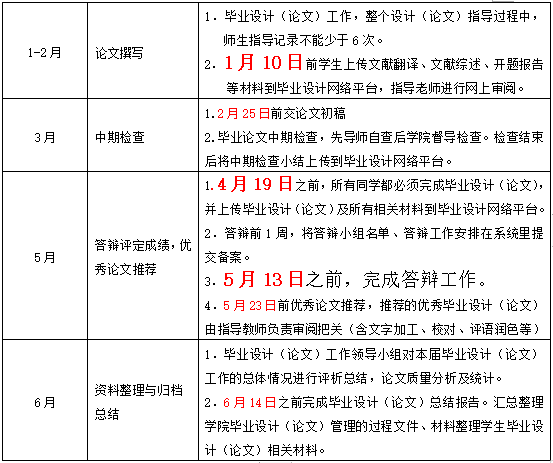 注:1.各专业学生毕业设计(论文)的集中撰写时间不得少于8周