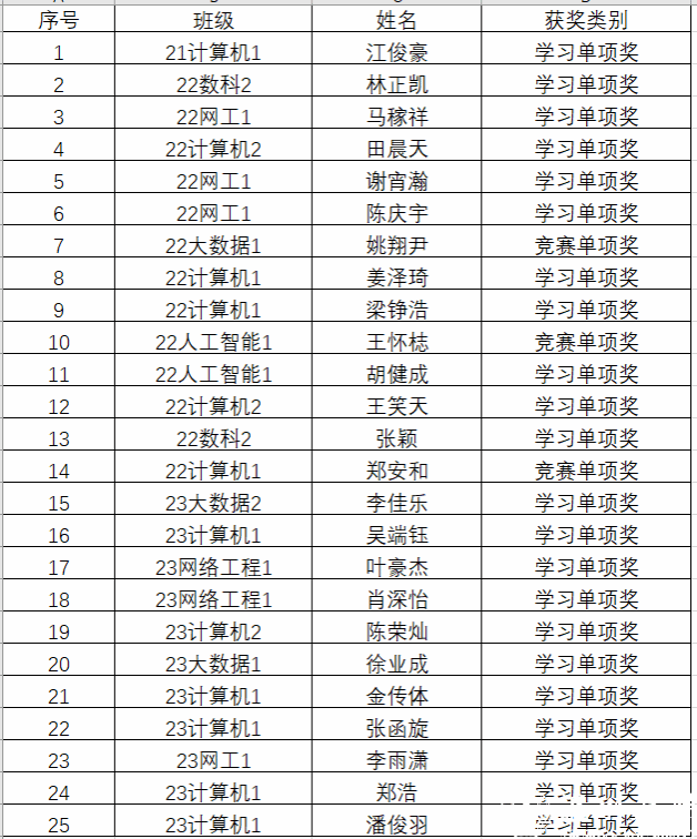 根据《关于2023-2024学年单项奖学金申请的通知》,经个人申请及学院奖助学金评审小组审核,拟推荐江俊豪等学生为2023-2024学年单项奖学金获得者。现将名单予以公示,如有异议请在公示期内及时反馈。具体名单如下: