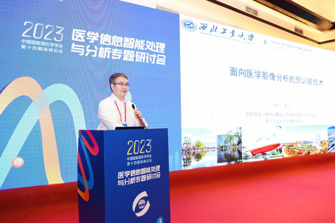 夏勇教授作题为“面向医学影像分析的预训练技术”的报告。报告围绕医学影像分析模型预训练的技术挑战,从数据标注、数据维度、模型能力这几个角度,介绍报告人课题组开展的相关研究和经验体会,并探讨医学影像分析模型预训练的机遇与挑战。