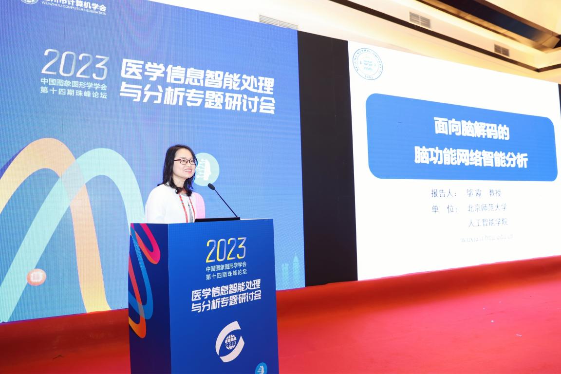 邬霞教授作题为“面向脑解码的脑功能网络智能分析”的报告。利用智能计算方法探究不同认知状态下大脑的工作机制,期望智能计算的引入能帮助进一步探明脑神经机制,促进脑科学发展,为智能算法的发展提供脑科学的理论支撑和启发。