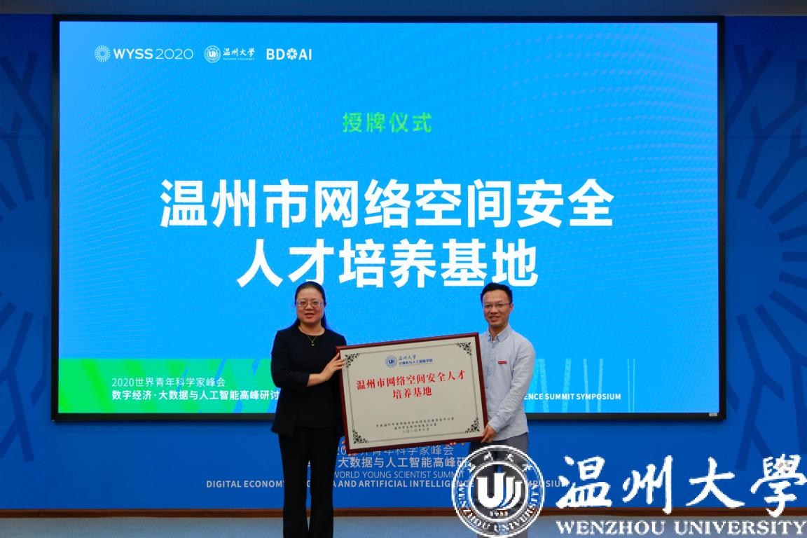 此次研讨会上,还有一系列大动作:温州网络空间安全人才培养基地落户温大 、浙南(温州)数字经济产教融合联盟落户问温大、温州市数字经济研究院成立。这些平台将进一步促进大数据与人工智能人才培养,推动政产学研资源整合、学术交流和科研成果对接,更好地服务温州乃至浙江,助力数字经济高质量发展做出积极贡献。