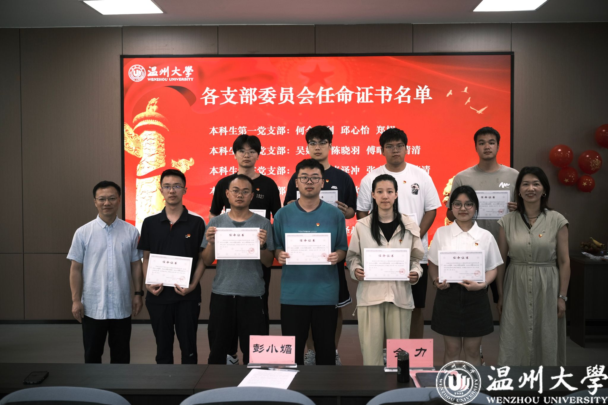 此次仪式,学院党委精心策划了一系列饱含深意的环节。为毕业生党员颁发政治生日贺卡,这方寸之间承载着党组织深切的关怀与殷切的期望,时刻提醒着他们无论身处何方,都要永葆党员本色,牢记入党初心。学院党委为过去一年在志愿服务中发挥先锋模范作用的大三党服工作人员颁发 “党服荣誉证书”,以表彰他们用实际行动践行党员责任与担当的优异表现。随后,新一届党服团队上任仪式同步举行,党委书记全力为新一届党服人员授予聘书,并颁发各支部委员会任命证书,这既是对新成员的充分信任,更是激励他们传承红色基因,在新的岗位上续写为党奉献的新篇章。