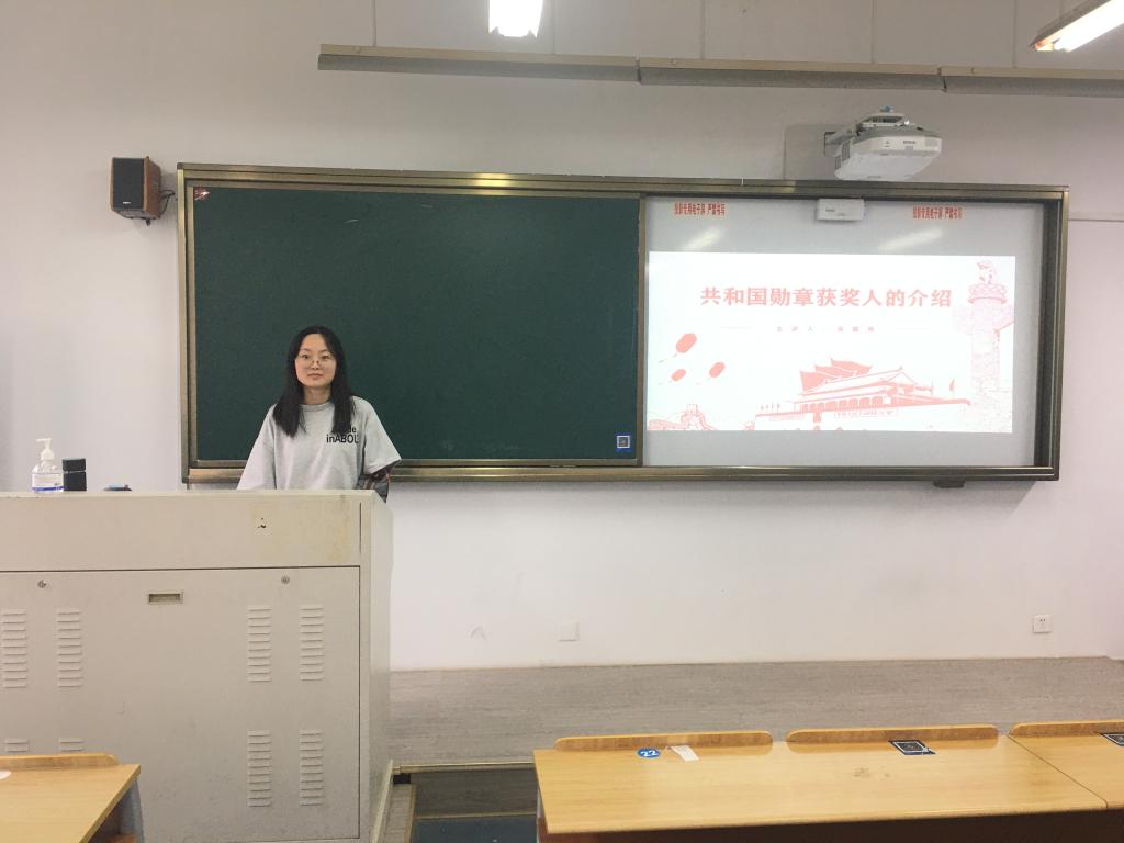 首先,吴雅青同学向大家介绍了共和国勋章,作为中华人民共和国最高荣誉勋章,它被授予在中国特色社会主义建设和保卫国家中做出巨大贡献的杰出人士。通过主讲人的介绍,我们了解到了这枚勋章背后的重量。随后,通过观看“全国抗击新冠肺炎疫情表彰大会”的视频,回顾了抗击新冠肺炎疫情取得的重大战略成果,充分展现了中国人民和中华民族的伟大力量,激励我们在新时代新征程上披荆斩棘。最后,通过视频与文字结合的方式,吴雅青同学向我们一一介绍了钟南山、张伯礼、张定宇、陈薇四位人民英雄,他们为打赢这场新馆肺炎疫情做出了卓越贡献,是当之无愧的“国之院士”。