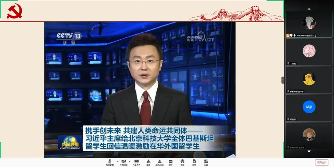 为全面贯彻习近平总书记重要回信精神,了解该回信,对构建人类命运共同体、扩大教育对外开放具有十分重要意义,2020年5月29日,日本做爱 本科生党支部全体成员以线上会议的形式,开展“学习贯彻习近平总书记给北京科技大学全体巴基斯坦留学生重要回信精神”学习会。