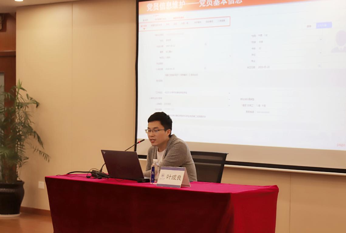 此次培训共分为两部分。第一部分,叶成良老师向大家介绍如何安装和使用全国党员信息管理系统,并重点介绍系统中党组织和单位信息管理、党员信息管理和组织关系转接这三个功能。叶老师指出,全国党员管理信息系统工作是党的建设重要基础性工作,是一项严肃性、动态性工作,需要学生党员骨干协助老师做好系统数据的维护工作。学生党员骨干要做到小心排查、及时更新、谨慎操作。随后,叶老师现场指导各位学生党员骨干在自己的电脑上下载并登录全国党员信息管理系统,熟悉系统界面及操作流程。