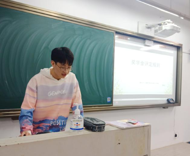 董成龙同学在5A204和304分别进行宣讲。首先,他对奖学金的类别进行大体阐述。之后,以谷超豪奖学金、三好学生和学习标兵这三个荣誉为例讲解了其评选办法,让同学们有了全面细致的了解。