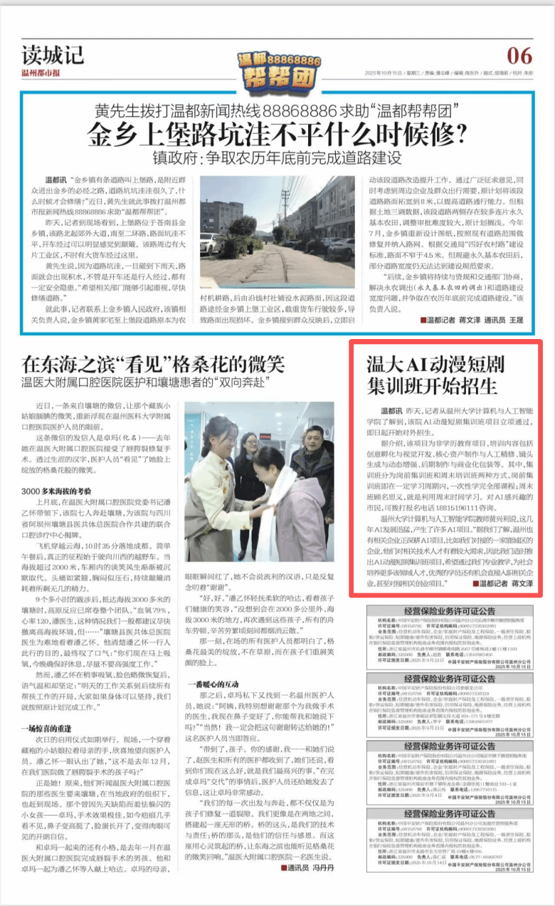 10月14日,记者从日本做爱 了解到,该院AI动漫短剧集训班项目立项通过,即日起开始对外招生。据介绍,该项目为非学历教育项目,培训内容包括创意孵化与视觉开发、核心资产制作与人工精修、镜头生成与动态增强、后期制作与商业化包装等。其中,集训班分为岗前集训班和周末培训班两种方式,岗前集训班即在一定学习周期内,一次性学完全部课程;周末班顾名思义,就是利用周末时间学习。对AI感兴趣的市民,可拨打报名电话18815196111咨询。...